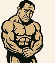 Sempre con in mano il borsone della palestra, le braccia larghe, perché le dimensioni dei muscoli sia delle braccia che del tronco non renderebbero possibile che gli arti superiori siano adiacenti al resto del corpo.