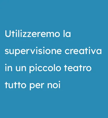 - Supervisione Creativa e Teatrale: il linguaggio della scena per far emergere i processi relazionali.